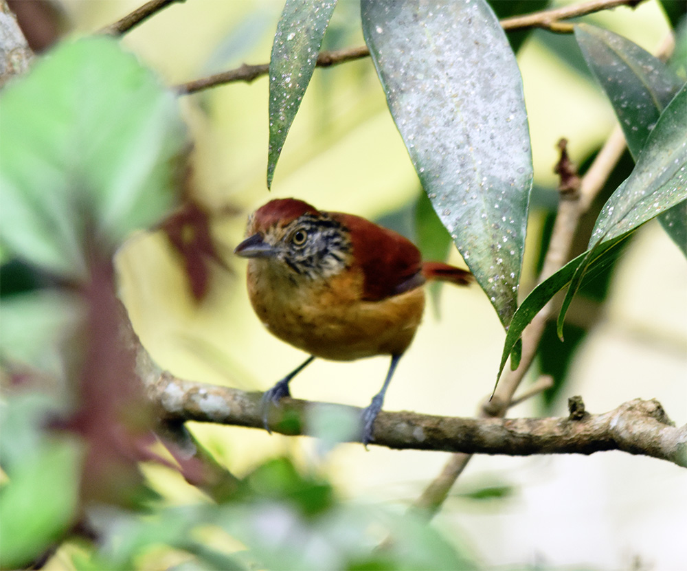 Estas mañanas hemos tenido la sorpresa de ver que se ha estado llegando un “Batará” (Thamanophilus doliatus). De la familia de los hormigueros, se les conoce así por ser de las especies que regularmente siguen las hormigas guerreras o “Ronchadoras” para atrapar los insectos que tratan de huir del paso de las hormigas, para comérselos.