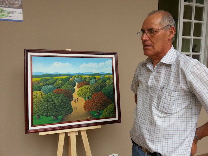 (SAN JOSÉ, 23 DE ABRIL, 2014- EL JORNAL).El artista aserriceño Héctor Guido Campos Mena expone, en la Municipalidad de Aserrí, ocho pinturas de su amplia colección, en la que mezcla una serie de estilos y temas, la cual se podrá observar hasta el 2 de mayo.