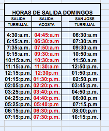 HORARIO TURRUJAL-SAN JOSÉ LOS DOMINGOS