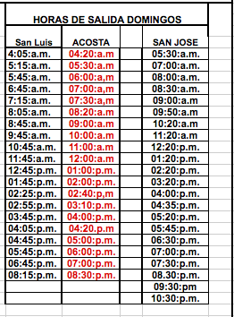 HORARIO ACOSTA -SAN JOSÉ LOS DOMINGOS