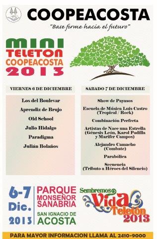 (SAN JOSÉ, 30 DE NOVIEMBRE, 2013). El viernes 6 y el sábado 7 de diciembre del presente año, los acosteños podrán apoyar a la teletón nacional por medio de la “miniteletón” organizada por Coopeacosta.