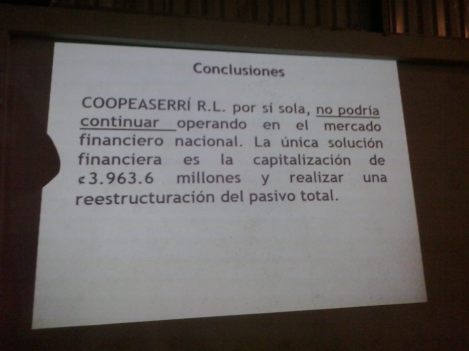 (SANJOSÉ, COSTA RICA, 23 DE MARZO, 2015-EL JORNAL). El descalabro de Coopeaserrí alcanza los ¢3963 millones, según informó el interventor Johnny Salazar a los delegados el pasado sábado 21 de marzo, en una asamblea realizada en el gimansio del Liceo de Aserrí.
