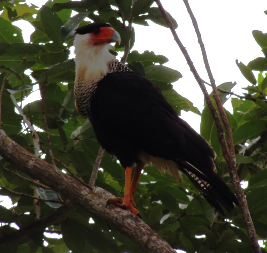 En el trayecto después del cementerio, nos llamó la atención unas aves un poco grandes, haciendo piruetas en el aire como jugando. Observándolas detenidamente pudimos identificarlas como “Caracara Crestados” (Caracara cheriway), ya que ágilmente sobrevolaban sobre nosotros y emitiendo unos sonidos propios de la especie. Producen un sonido como un chiflido continuo.