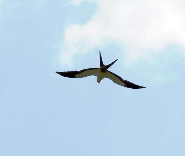 Cuatro “Gavilanes Tijerilla” (Elanoides forficatus) surcaban el aire con sus vuelos rápidos y ágiles y en ocasiones planeando como un papalote.