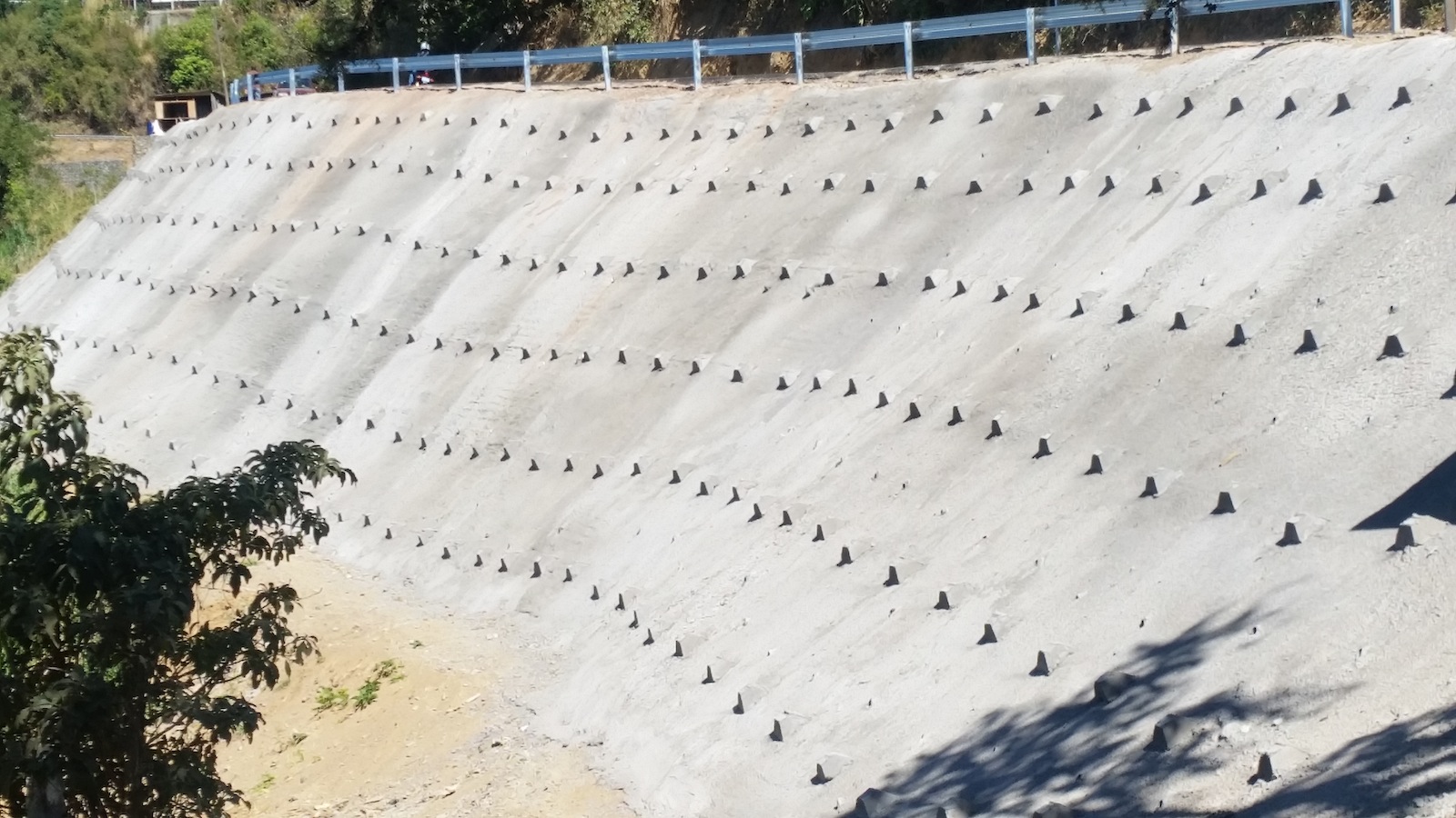 El muro de estabilización se hizo mediante la técnica del suelo cosido, y además de este arreglo, se hizo una reparación en la vía, dado el estado intransitable en que se encontraba. Antes se habían hecho muros de contención por medio de gaviones.