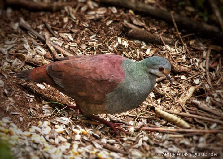 Se trata de la Paloma Perdiz Costarricense (Zentrygon costarisencis), perteneciente a zonas de Costa Rica y el Oeste de Panamá. Sus hábitats son las filas de montañas de bosques húmedos superiores a los 1500 metros sobre el nivel del mar. Se mantiene a nivel del suelo, donde busca entre la hojarasca semillas, frutos caídos y algunos insectos pequeños. Solitaria o en parejas.