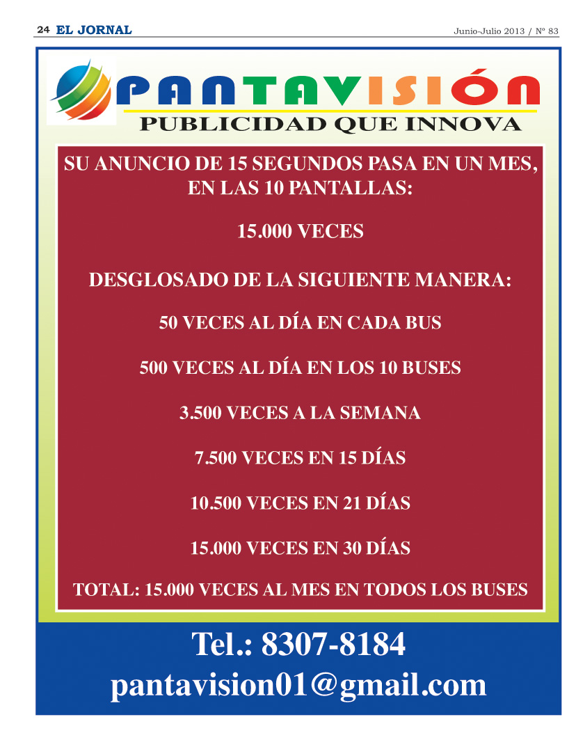 Pantavisión es un servicio publicitario innovador en los buses de Transportes San Gabriel (TSG) en Acosta y San Gabriel de Aserrí, en el que están contempladas una serie de comunidades como Vuelta de Jorco, Tarbaca yLos Mangos.