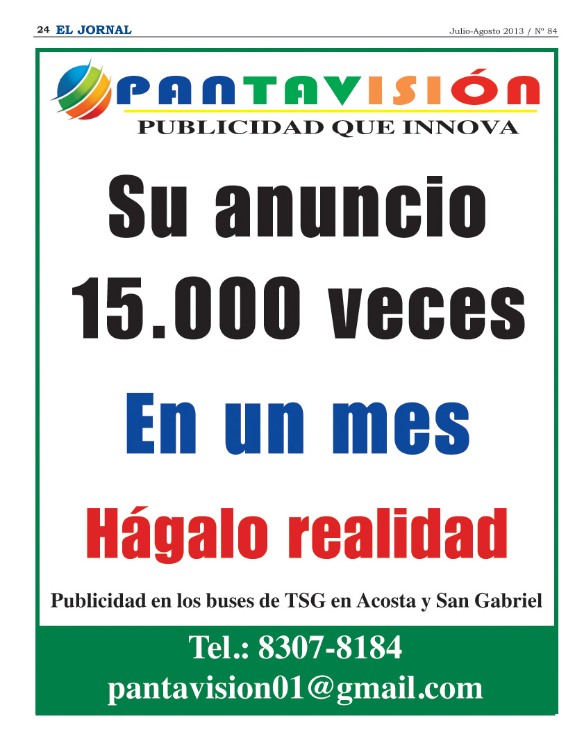 Si desea conectar a su negocio con publicidad de avanzada, llámenos al 8307-8184 o escríbanos a: pantavision01@gmail.com
