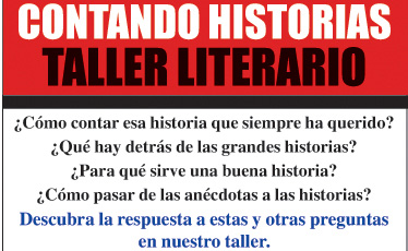 (SAN JOSÉ, 04 DE NOVIEMBRE, 2013). El próximo sábado 16 de noviembre se impartirá el taller literario “Contando historias”, en el que se hace un recorrido por las principales técnicas sobre las que se sostiene y se estructuran las novelas y cuentos, así como los relatos.